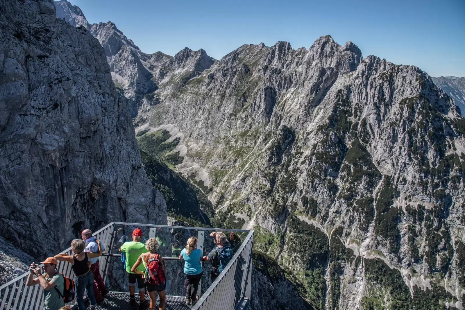 Sind Sie schwindelfrei und wollen 1.000 Meter in die Tiefe schauen? Dann nutzen Sie die direkt neben der Bergstation der Alpspitzbahn gelegene Aussichtsplattform AlpspiX. Sie bietet einen wirklich beeindruckenden Rundumblick auf die Zugspitze, das Wettersteingebirge und die steile Norwand der Alpspitze. Durch den aus Stahl und Glas konstruierten, durchsichtigen Steg, der weit über den Abgrund ragt, können Besucher mehr als 1.000 Meter in die Tiefe des Höllentals schauen. Doch Achtung: Man sollte schon schwindelfrei sein, wenn man den Steg begeht.