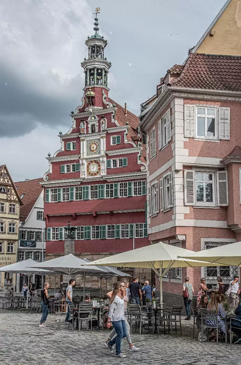 Schon beim Bau des heutigen Esslinger Rathaus als Kauf- und Steuerhaus in den Jahren 1422 und 1423 wurde darauf geachtet, dass das Bauwerk möglichst repräsentativ wird. Kein Wunder also, dass es auch heute noch als das schönste Gebäude der Stadt gilt. Während im Erdgeschoss Brot- und Fleischlauben untergebracht waren, befand sich im Obergeschoss ein Versammlungs- und Tanzsaal. Die frühbarocke Ratsstube, von deren Fenstern aus man damals Todesurteile verkündete, wurde im Jahr 1665 von der Südseite abgetrennt. Besonders auffallend ist die Renaissance-Fassade, die Ende des 16. Jahrhunderts der Nordseite vorgesetzt wurde. Bei Führungen kann man die Astronomische Uhr sowie das Astrolabium bestaunen.