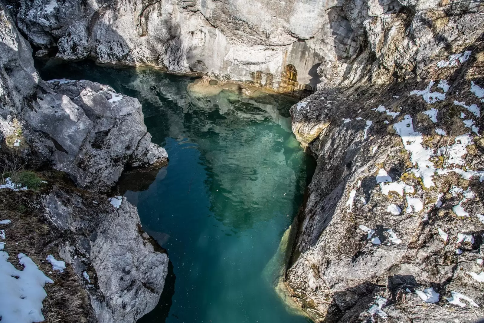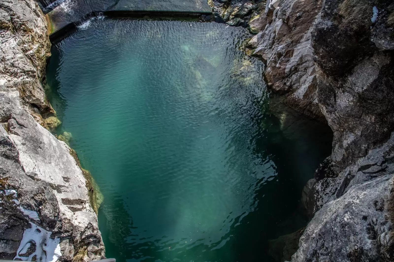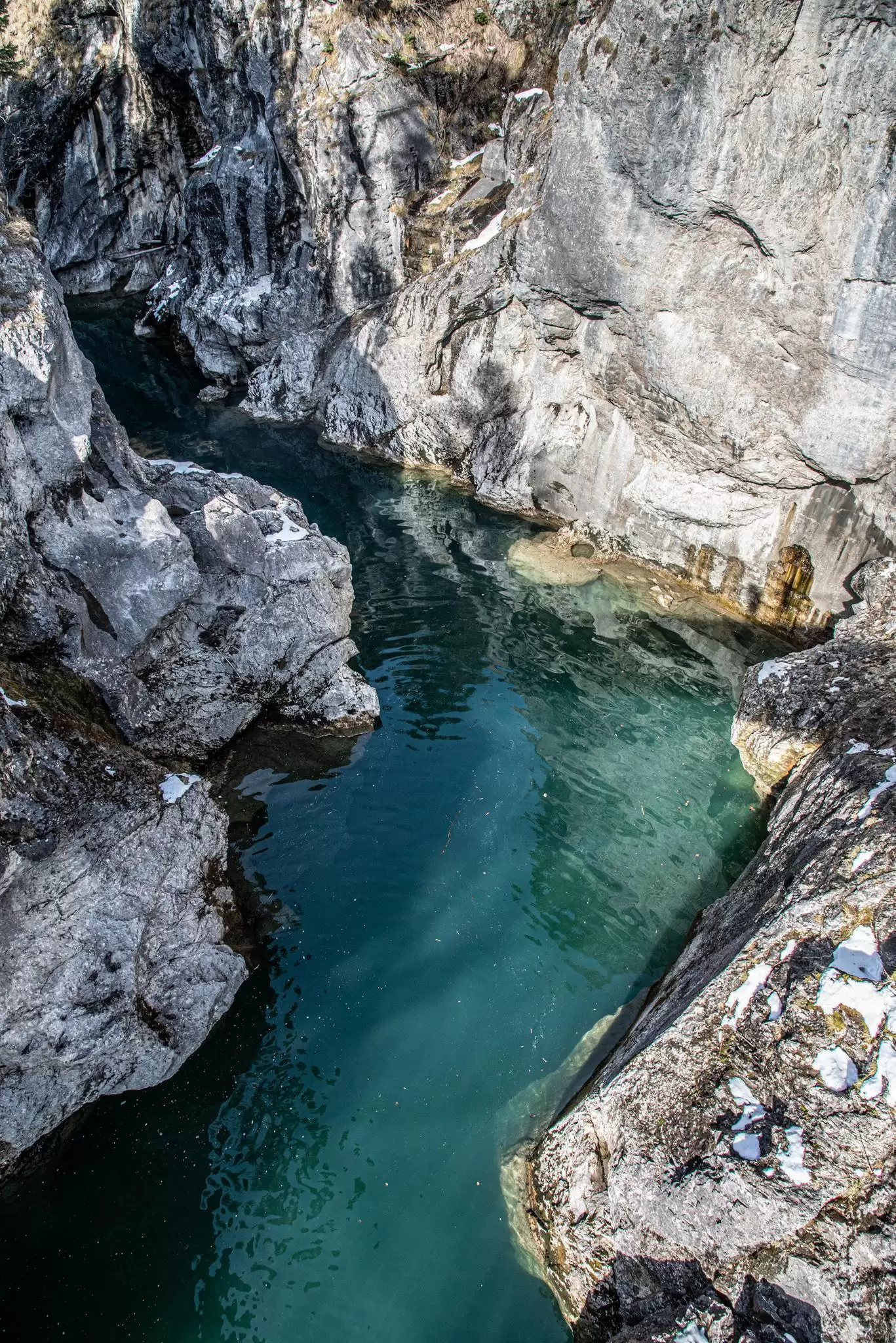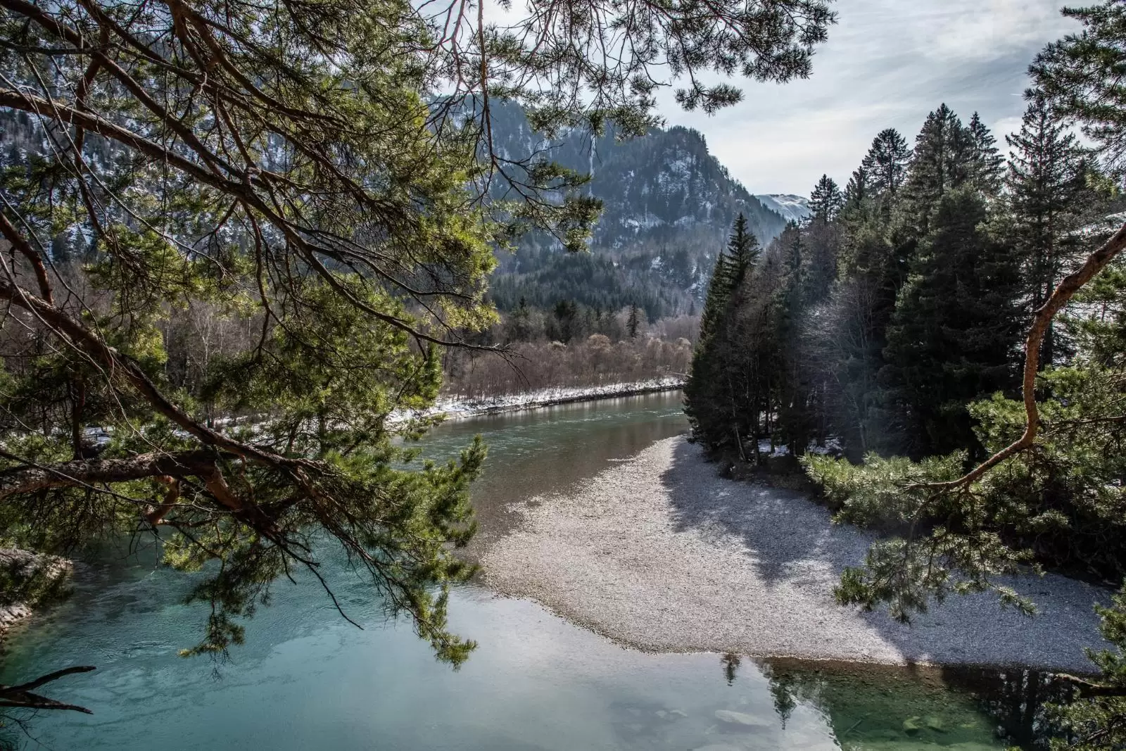 Wenn du dich umdrehst, bietet sich dir auf der anderen Seite ein ebenfalls beeindruckender Blick auf die Lechfall Klamm. Sie entstand über viele Jahrtausende, in denen sich der Lech einen Weg durch die Kalkfelsen bahnte. Die Lechschlucht bietet dir einen tollen Blick auf das grün schimmernde Wasser vor hellen Felsen. Den Blick wusste auch König Max von Bayern, der Vater von König Ludwig II., zu schätzen. Eine Büste zu seinen Ehren steht am Marienfelsen am Lechfall.