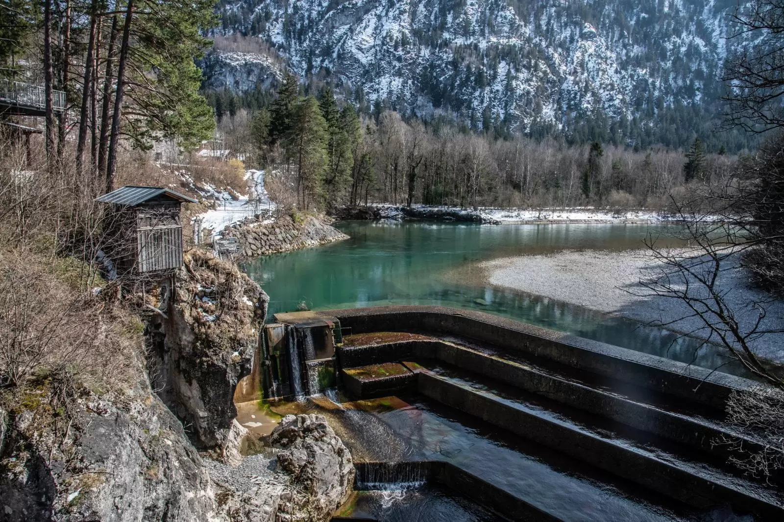 Im Jahr 1787 wurden fünf steinerne Stufen in den Fluss eingebaut – nicht nur, um Mühlen anzutreiben, sondern auch, um den Holztransport auf dem Lech zu erleichtern. Was heute ein beliebtes Ausflugsziel ist, war also einst ein bedeutender Ort der Technik. Anfang des 20. Jahrhunderts kam ein Wasserkraftwerk hinzu, das bis heute Strom erzeugt. Auch im Katastrophenfall spielt der Lechfall eine wichtige Rolle: Nach Starkregen im Jahr 2005 half er aktiv beim Hochwasserschutz. Der Wasserfall ist also nicht nur schön, sondern auch funktional – ein lebendiges Zeugnis dafür, wie Mensch und Natur im Einklang wirken können.
