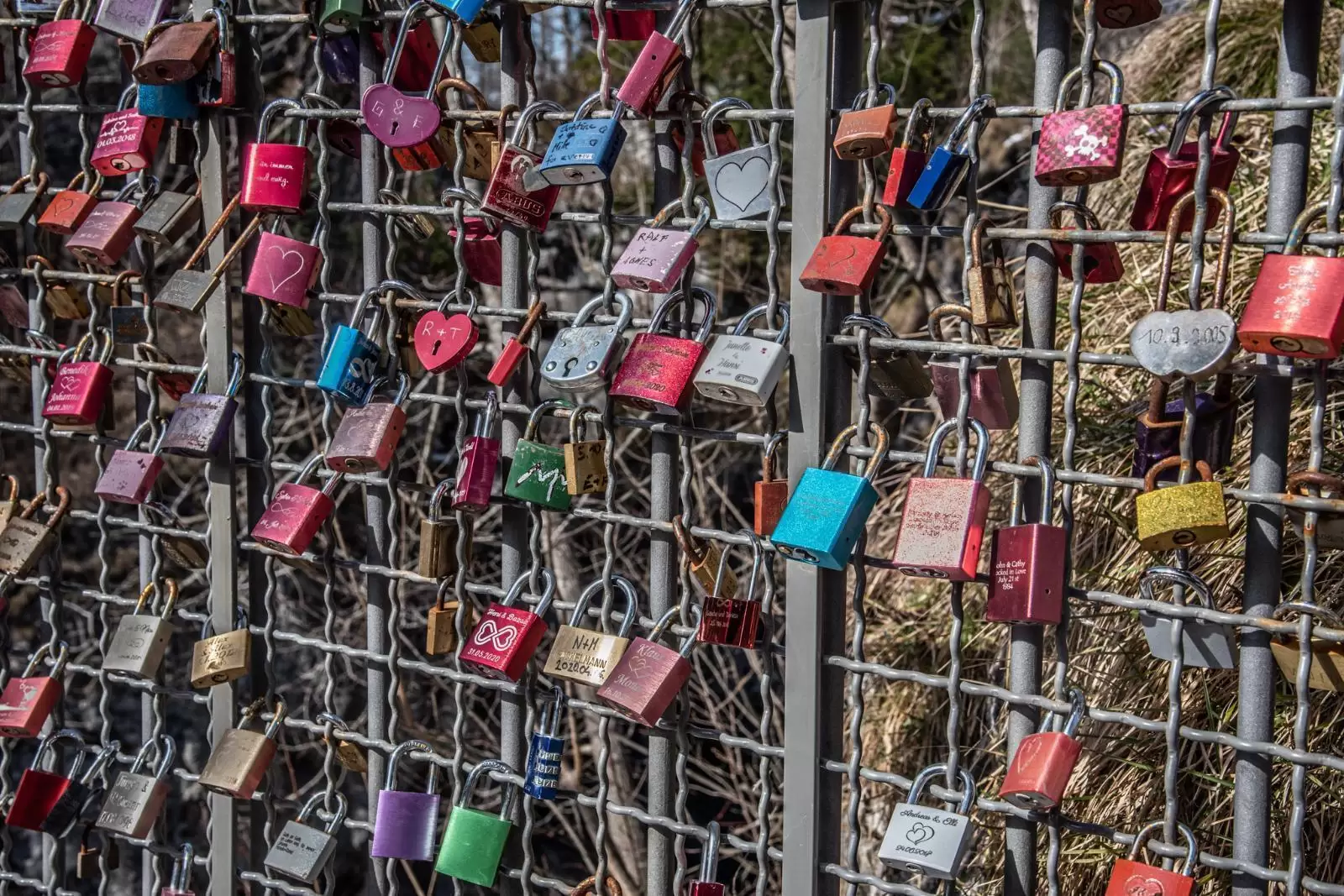 Am Lechfall erwartet dich eine spektakuläre Sehenswürdigkeit. Am besten siehst du den Wasserfall vom Maxsteg Füssen (König-Max-Steg) aus. Die zu Beginn des Stegs angebrachten Liebesschlösser zeigen, dass hier schon viele Paare gemeinsam standen. Wenn du in der Mitte des Stegs stehst, siehst du in eine Richtung den Lechfall Füssen, der über fünf steinerne Stufen kaskadenartig etwa 10 Meter in die Tiefe stürzt. Im Hintergrund leuchtet das Wasser des Lech grün.