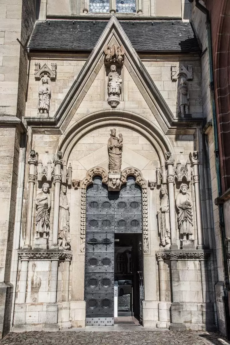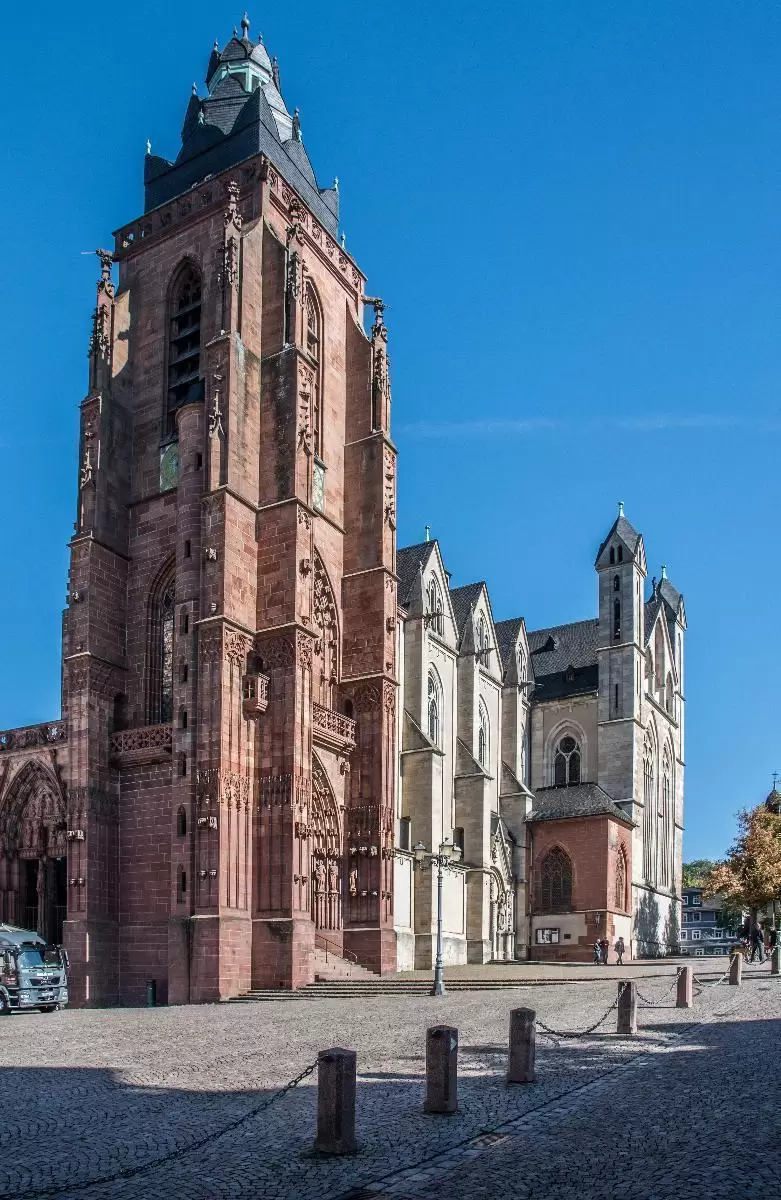 Der Wetzlarer Dom mitten in der Altstadt zieht schon von weitem die Blicke auf sich. Der Grund: die unfertige Fassade, die roten Sandstein, grünen Schalstein und an anderen Stellen verputzte Flächen zeigt. Außerdem ist der linke Turm bisher nur bis zum Sockelgeschoss gebaut und bei dem großen Mittelportal fehlt die Treppenrampe. Besonders auffällig ist der leere Raum hinter der Fassade, an dem Reste der spätromanischen Basilika angrenzen, die vorher an dieser Stelle stand und zugunsten des Neubaus abgerissen wurde. Ende des 14. Jahrhunderts kamen die Bauarbeiten aufgrund finanzieller Probleme der Stadt zum Stillstand. Auch anschließend stockte der Baufortschritt immer wieder jahrzehntelang.