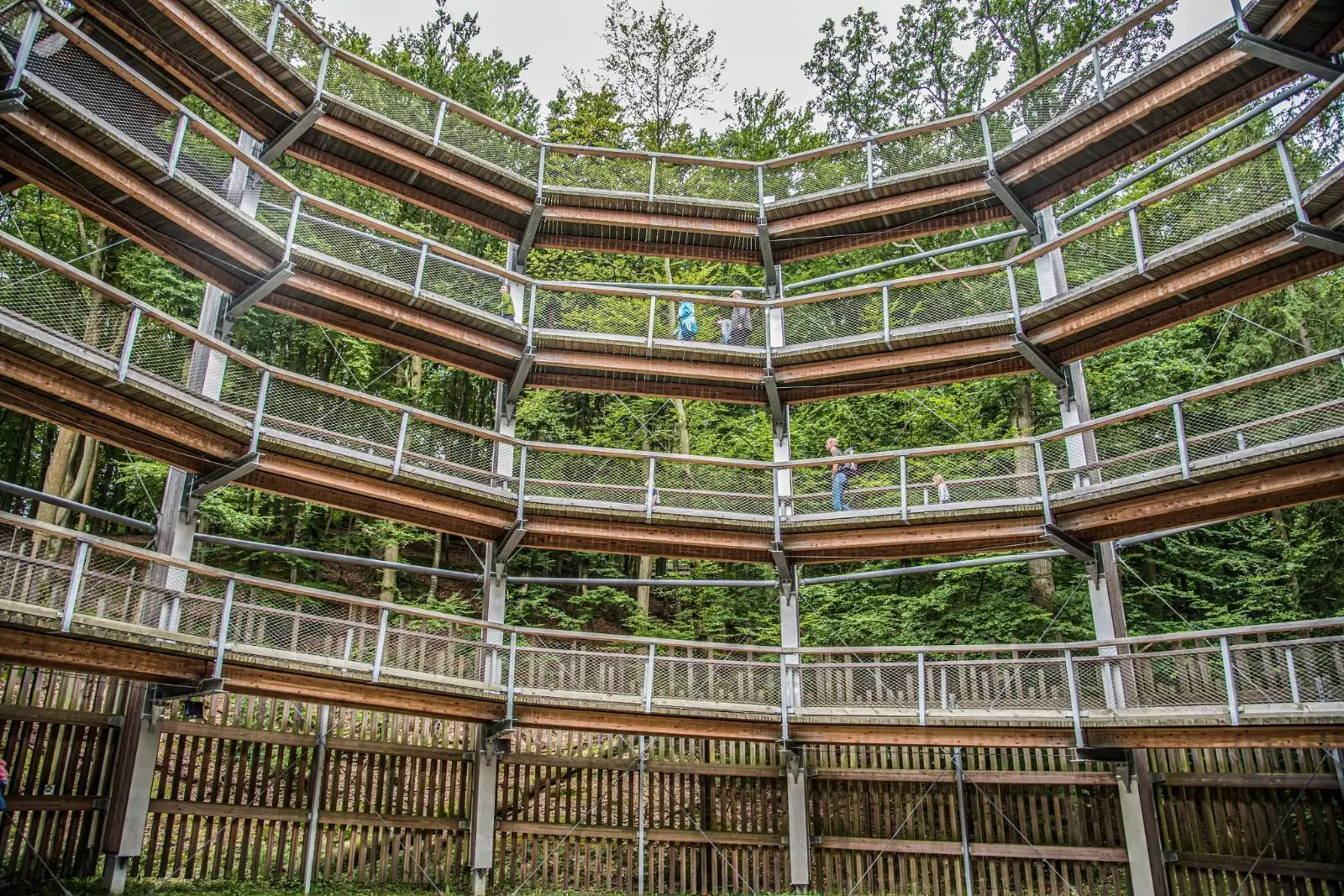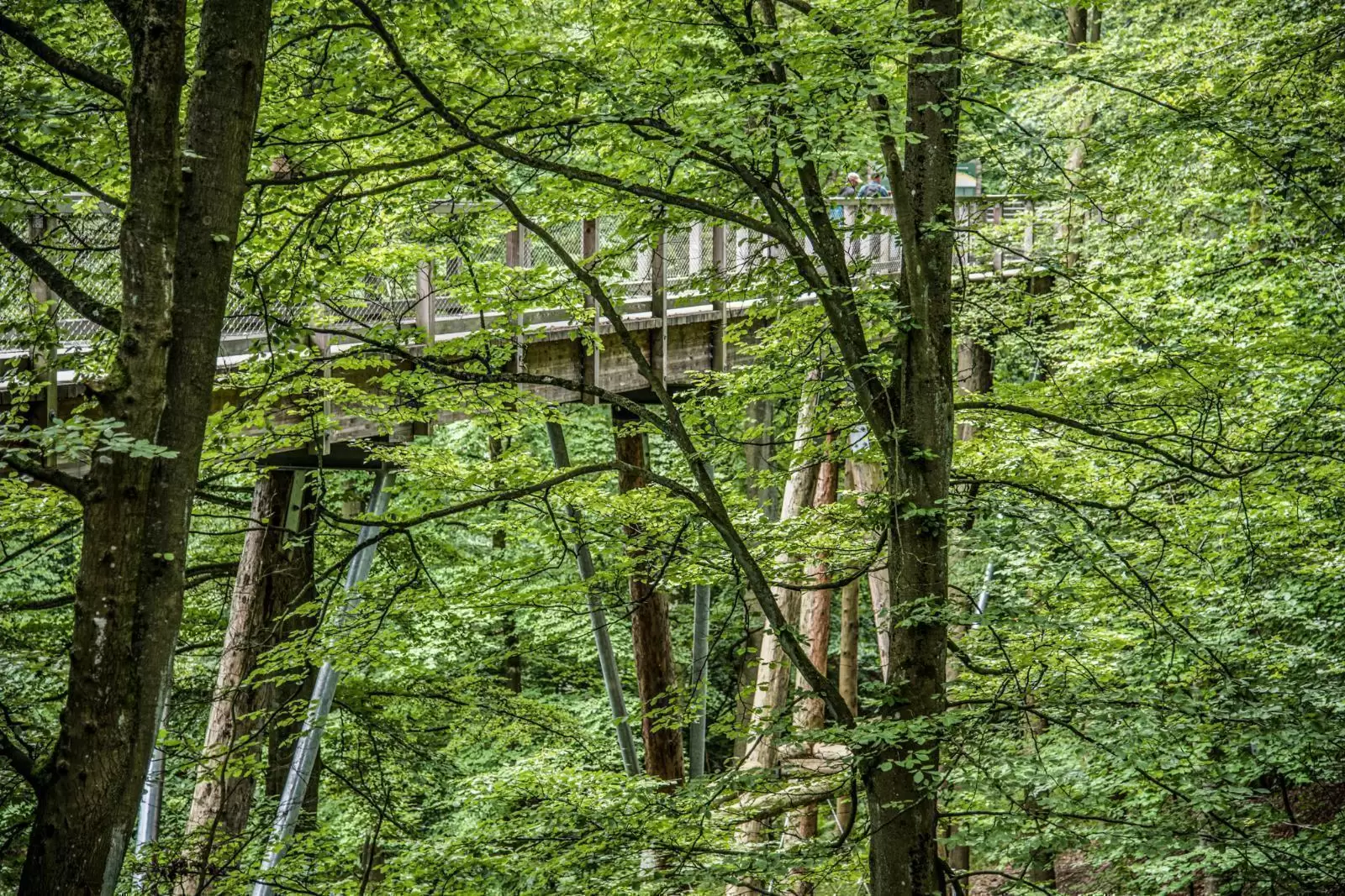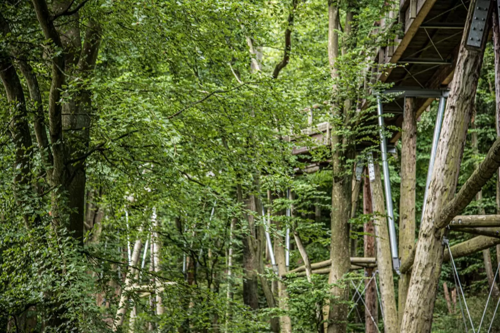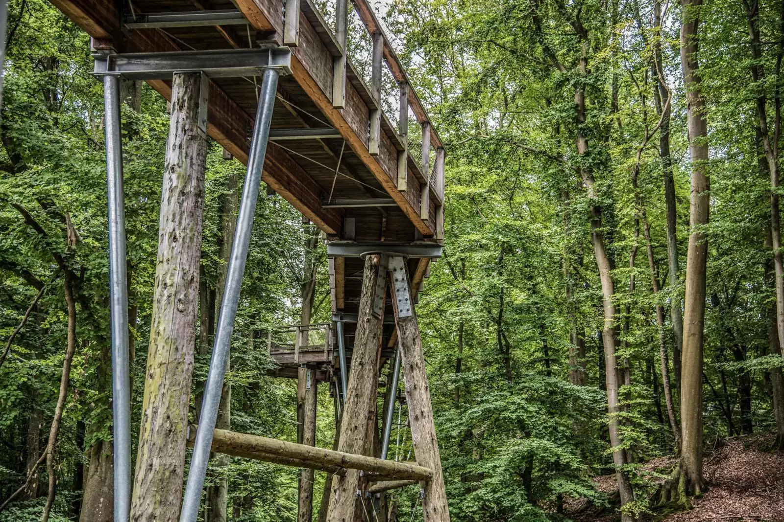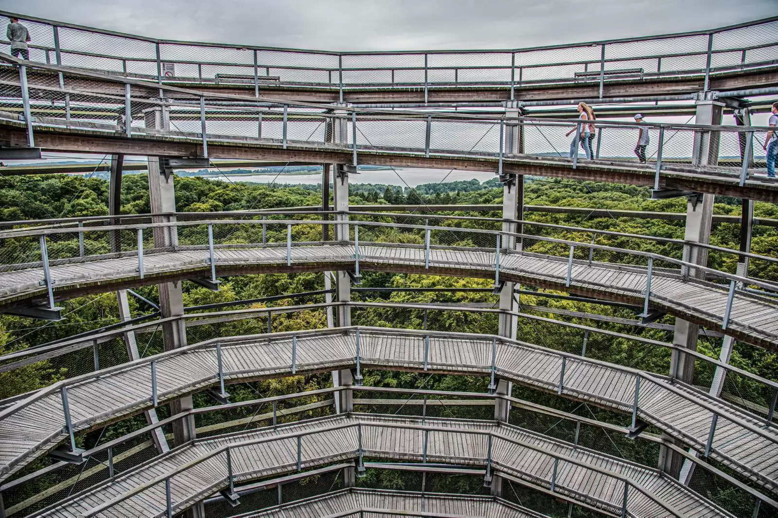 The island of Rügen is partly covered by unspoilt mixed forest, including beech and alder. If you want to experience this ‘at eye level’ with the trees, you should visit the Treetop Trail Rügen. The wooden path runs for more than 600 metres through the treetops and offers a special forest experience. The highest point is a 40 metre high tower with a viewing platform in the centre of the trail. From here you have an impressive panoramic view over the forest and vast parts of the island of Rügen.